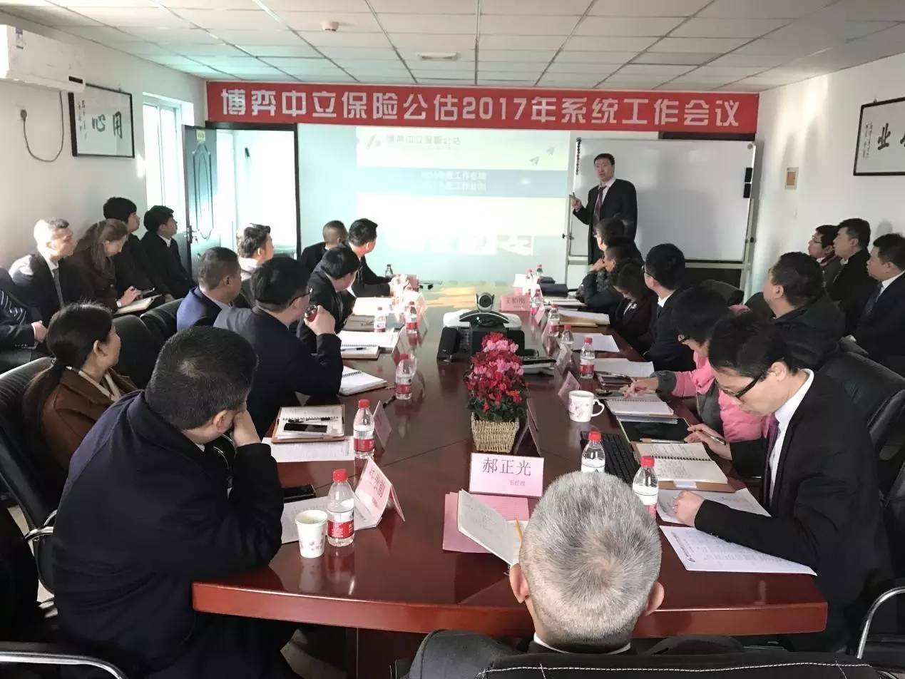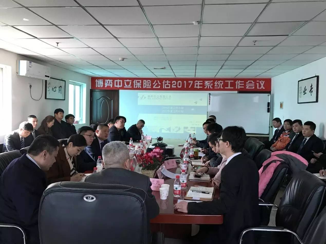 2月17日至2月19日,博弈中立保险公估2017年度系统工作会议在北京总公司召开。公司董事长任永前先生出席了此次会议。总经理郝正光先生主持此次会议并做了工作报告。分析了目前国内公估市场环境,制定了公司中长期战略发展规划。确定了2017年公司的重点工作和目标。以反保险欺诈为核心,以疑案调查为基础,审计追偿为亮点,在全国主推人伤业务,布局非车险业务,完成总公司4600目标及业务结构的转型。对于公司的下一步工作,郝正光总经理提出了四点要求:一是完善公司内部结构化治理;二是加大对机构发展规划的帮扶和管控;三是切实抓好人员培训计划;四是完善公司诚信数据查询系统(黑名单系统和审计系统) 加强对外合作与交流。